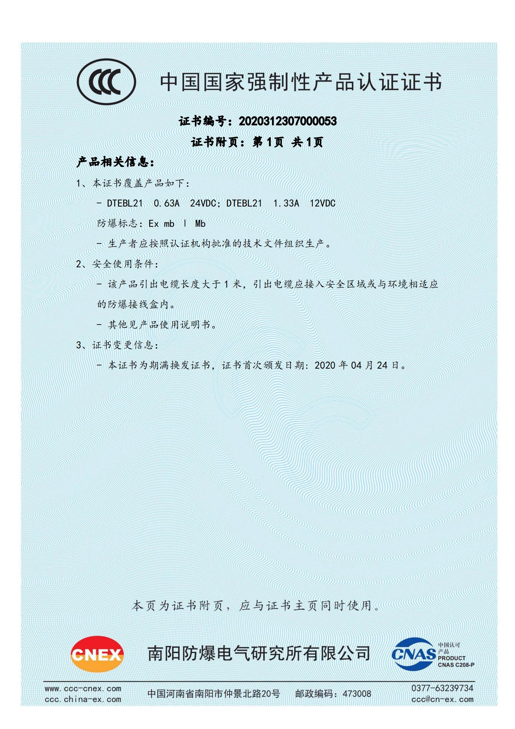 2020312307000052 矿用隔爆型液压阀用直流电磁铁CCC证书 有效期至2030年4月23日_00