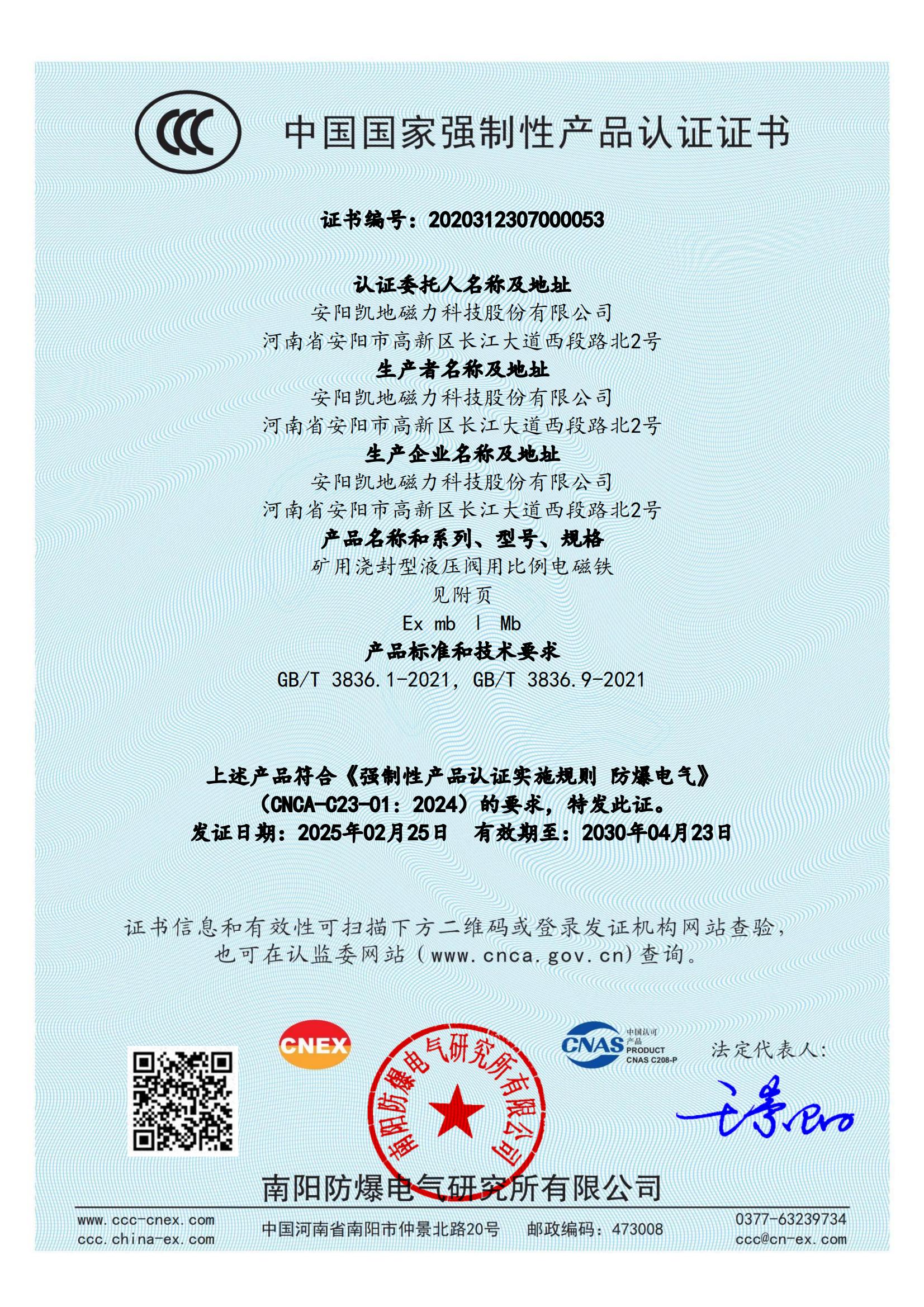 2020312307000053 矿用浇封型液压阀用比例电磁铁CCC证书 有效期至2030年4月23日_01