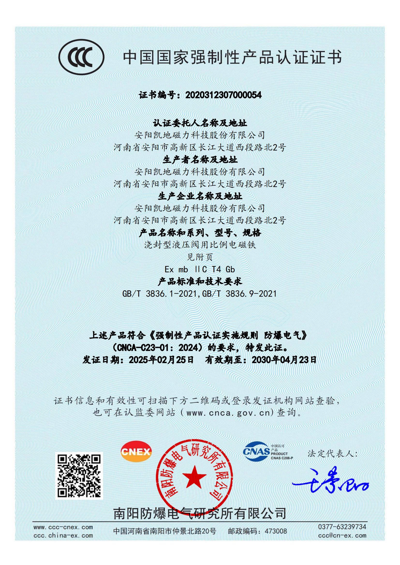 2020312307000053 矿用浇封型液压阀用比例电磁铁CCC证书 有效期至2030年4月23日_00