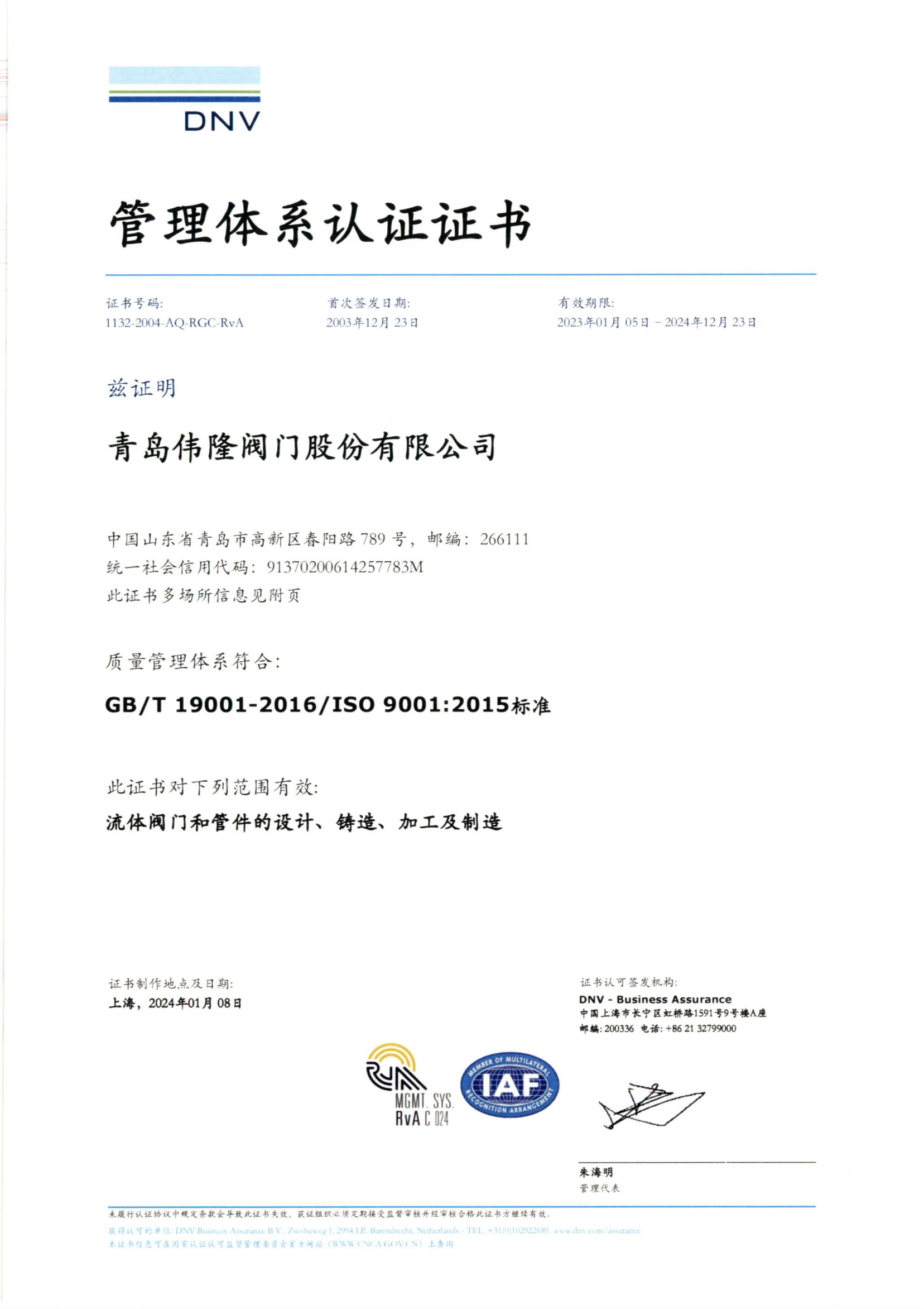 CNAS认可证书