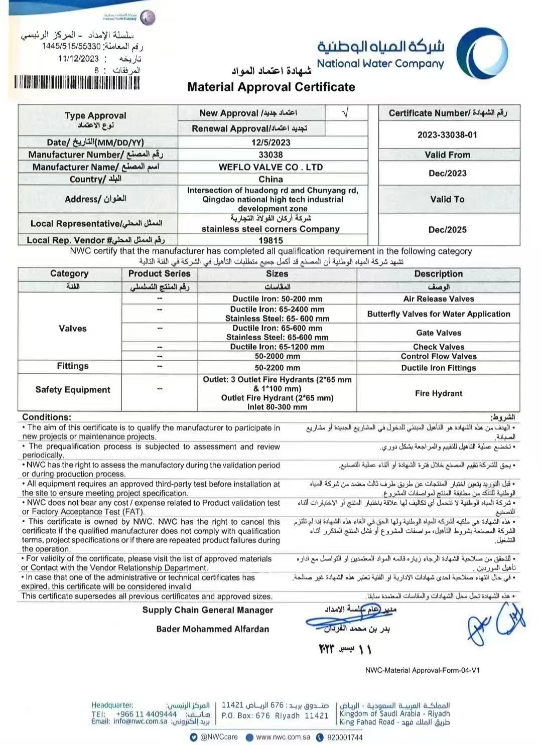 沙特国际水务署证书